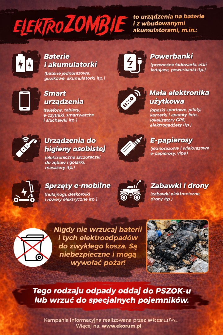 W Dniu Baterii postarajmy się przez chwilę zastanowić, jak postępujemy z naszymi domowymi urządzeniami zawierającymi wewnątrz baterie, gdy ulegają awarii lub stają się przestarzałe? Często, niestety, lądują w zwykłym koszu na śmieci, ponieważ są niewielkich rozmiarów i wyglądają niepozornie. A jednak to właśnie te urządzenia mogą powodować pożary odpadów i instalacji do ich przetwarzania. Media coraz częściej informują o takich przypadkach. Podczas takich pożarów bardzo niebezpieczne są emisje toksycznych substancji do atmosfery.