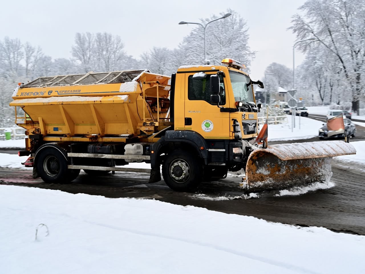 ❄️ Pługopiaskarki pracują stale dbając o przejezdność naszych ulic. Firmy Alba i Wieczorek dysponują 8 takimi pojazdami, a w magazynach są zapasy: 1500 ton piasku i 3000 ton soli. Do tego inne pojazdy i podmioty dbają również m.in. o publiczne chodniki. 🚜