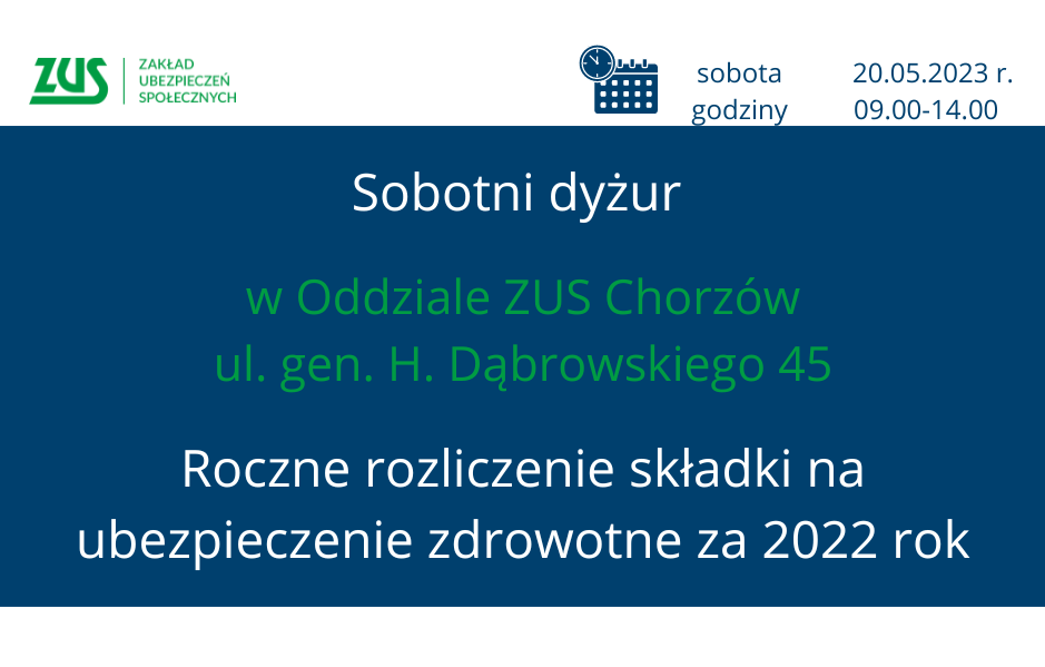 Zapraszamy zainteresowane osoby już w najbliższą sobotę 20 maja, w godz. 9.00 – 14.00 w chorzowskim Oddziale ZUS przy ul. gen. H. Dąbrowskiego.