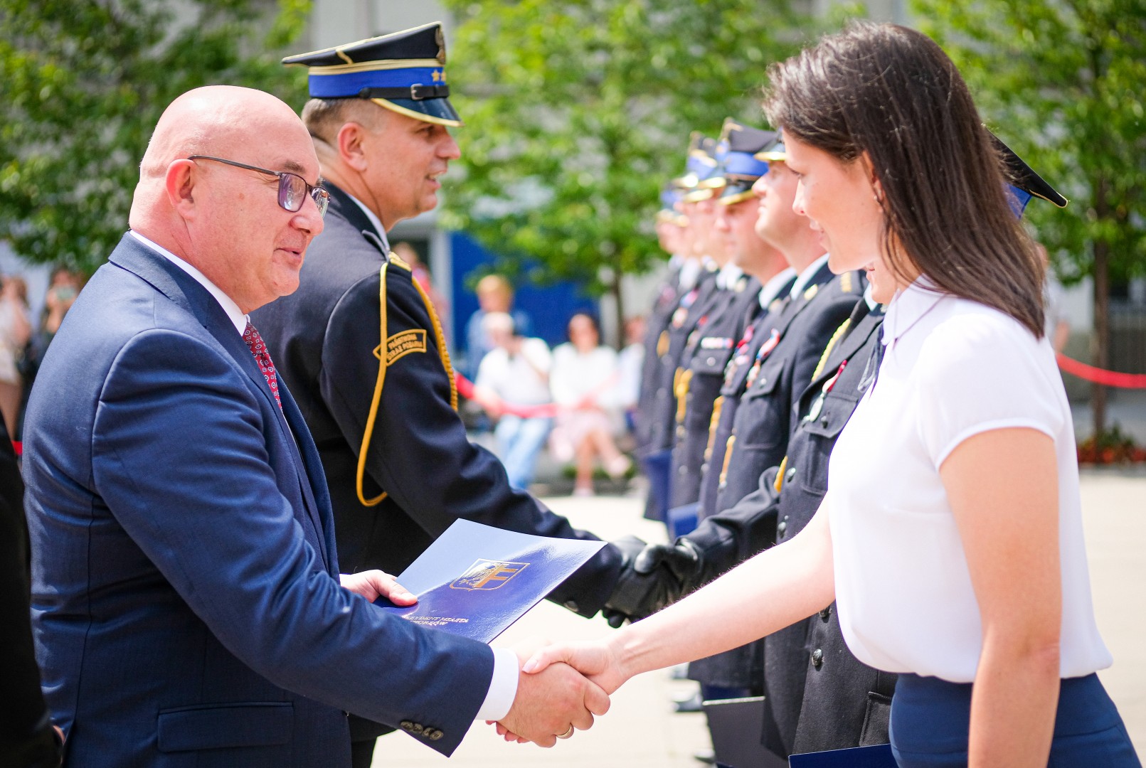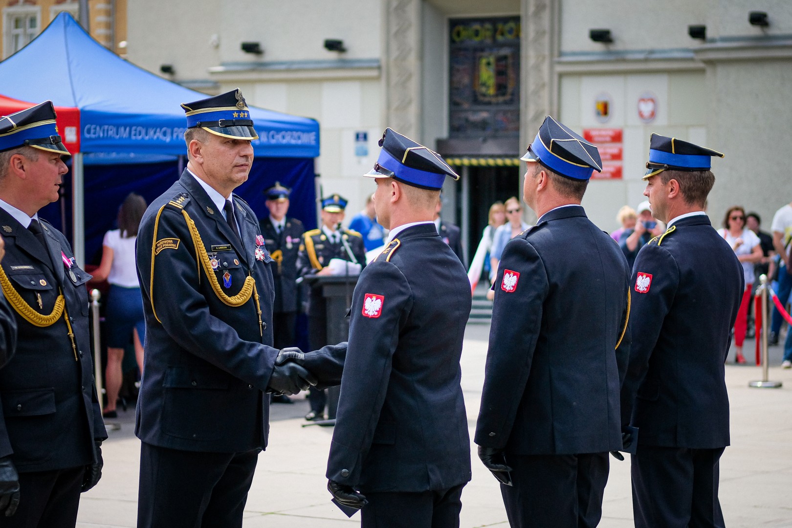 Wydarzenie rozpoczęło się od części oficjalnej, czyli nadania stopni i odznaczeń strażakom z Komendy Miejskiej Państwowej Straży Pożarnej. W uroczystości udział wzięli Prezydent Andrzej Kotala, Marcin Michalik Wiceprezydent Chorzowa i Waldemar Kołodziej Przewodniczący Rady Miasta Chorzów, a także Krzysztof Karaś Sekretarz Miasta.