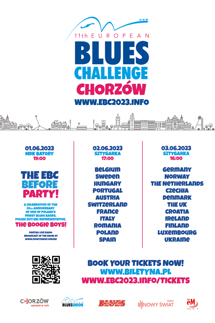 Podczas konferencji prasowej, które odbyła się 16 czerwca br., zaprosiliśmy na European Blues Challenge 2023 (EBC 2023) , który na początku czerwca odbędzie się w naszym mieście. To największy i najważniejszy europejski przegląd zespołów wywodzących się z tego gatunku muzycznego.