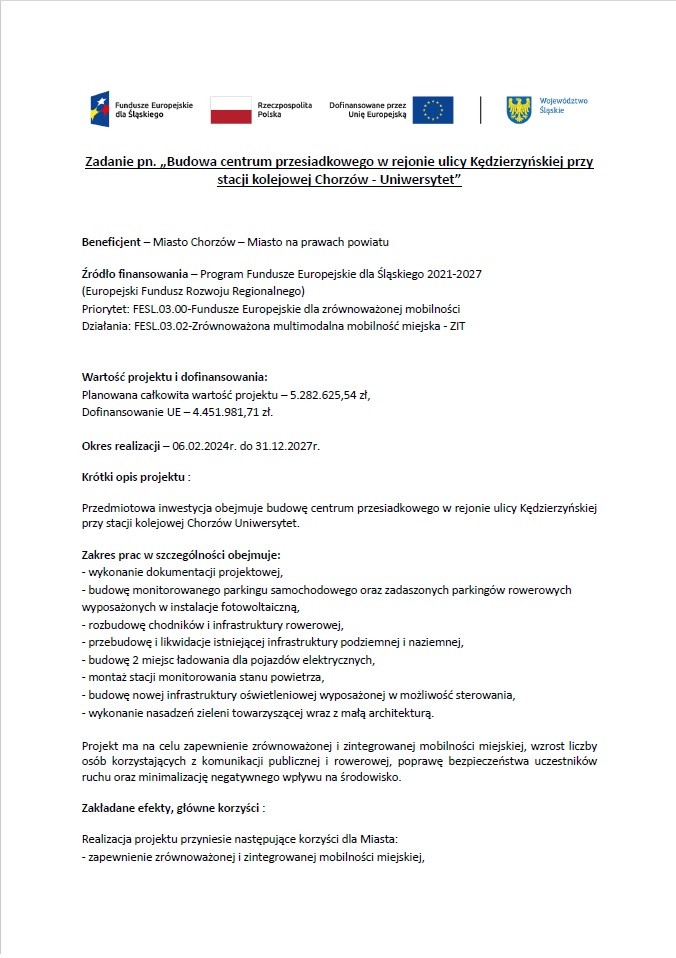 Budowa centrum przesiadkowego w rejonie ulicy Kędzierzyńskiej przy stacji kolejowej Chorzów - Uniwersytet