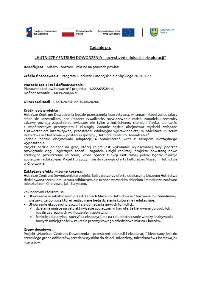 Projekt: HUTNICZE CENTRUM DOWODZENIA – przestrzeń edukacji i eksploracji