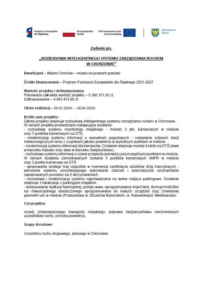 Projekt: Rozbudowa Inteligentnego Systemu Zarządzania Ruchem w Chorzowie