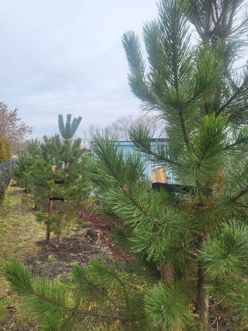 - 15 drzew z gatunków: platan klonolistny, grab pospolity, buk pospolity i sosna czarna.