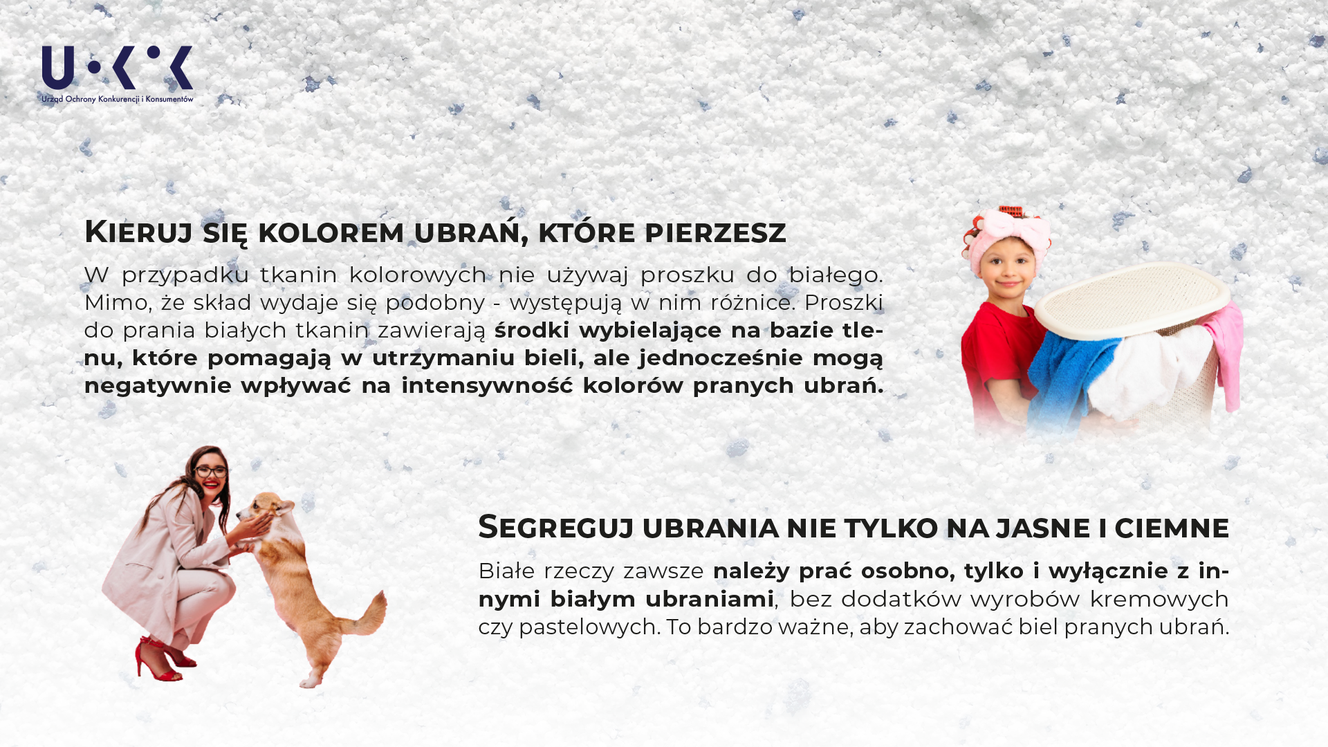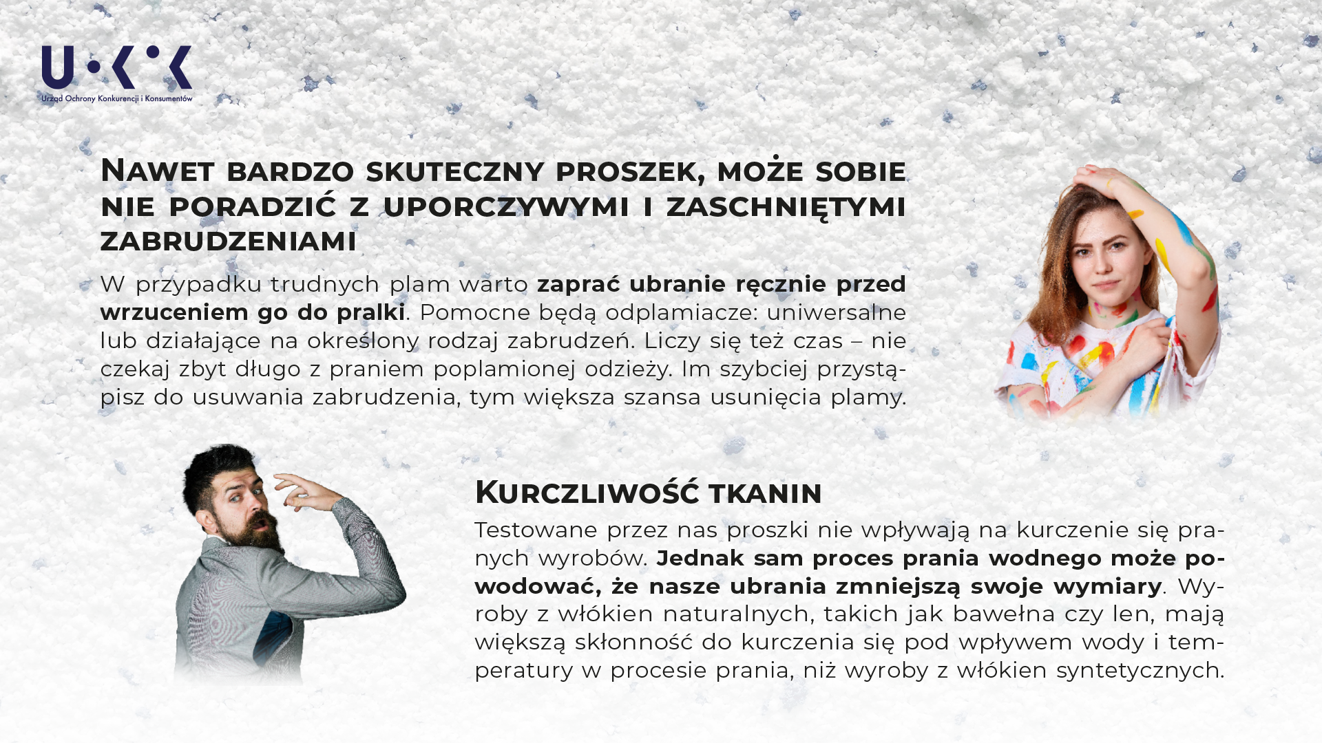 - Wybierając proszek, warto przyjrzeć się informacjom podanym na opakowaniu a przy praniu stosować się do pewnych reguł, aby podtrzymywać trwałość i atrakcyjny wygląd ubrań czy innych tkanin, ale też chronić środowisko. Nasi specjaliści przygotowali garść porad, które pomogą konsumentom nie tylko wybrać proszek do bieli, ale również cieszyć się z dłuższego użytkowania posiadanych rzeczy oraz niższego kosztu wykonania prania. To ważne aspekty służące tak budżetowi domowemu, jak i środowisku naturalnemu – mówi Tomasz Chróstny, Prezes UOKiK.