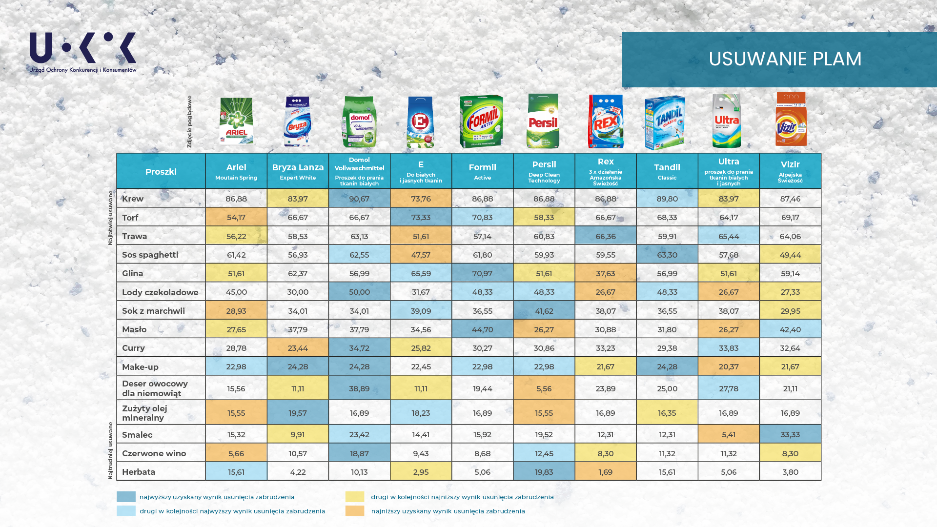 - Jak 10 popularnych marek poradziło sobie z usuwaniem plam? Sprawdź na uokik.gov.pl. Pobierz raport, a o szczegółowej metodologii badań dowiedz się z informacji z badania.