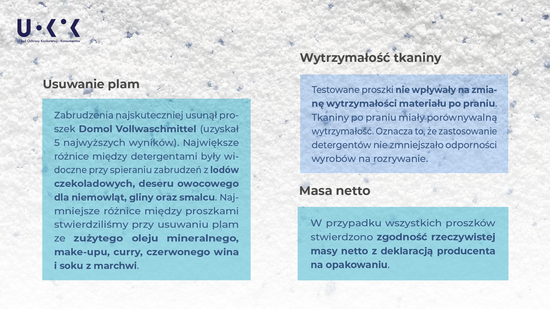 - Prawie 200 testów, ponad 5 tys. wyników – UOKiK sprawdził jakość proszków do prania białych tkanin.