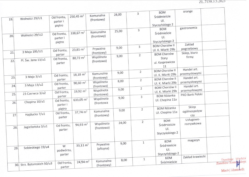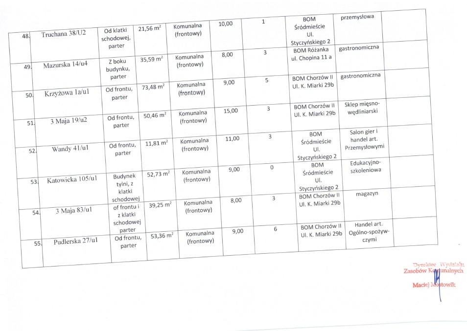 Prezydent Miasta Chorzów zastrzega sobie prawo do wycofania lokalu użytkowego z listy lokali do wynajęcia poza przetargiem w każdym czasie przed podpisaniem umowy najmu bez podania przyczyny.